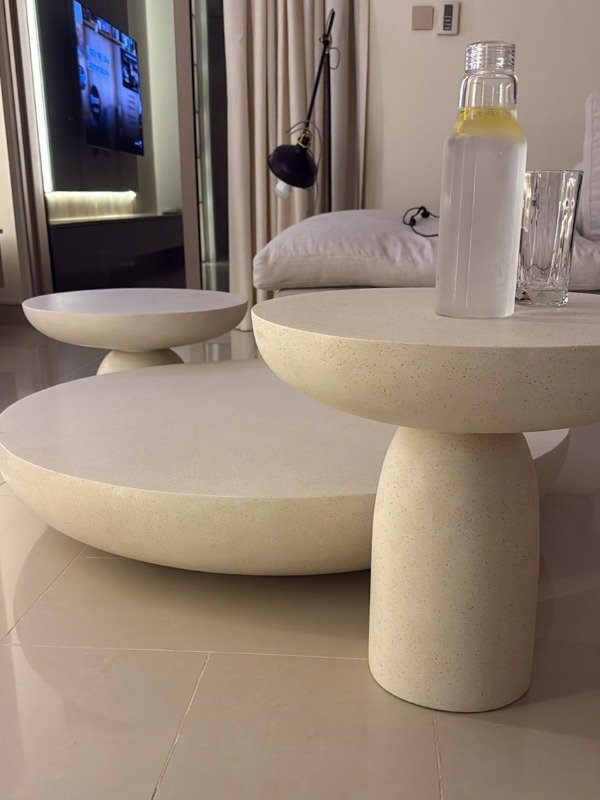 Nos declaramos culpables por robar el foco con nuestras micro mesas de concreto terrazo.